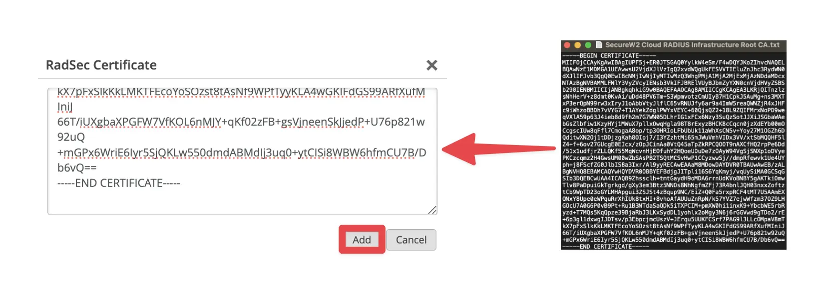 Click Add AP RadSec Certificate