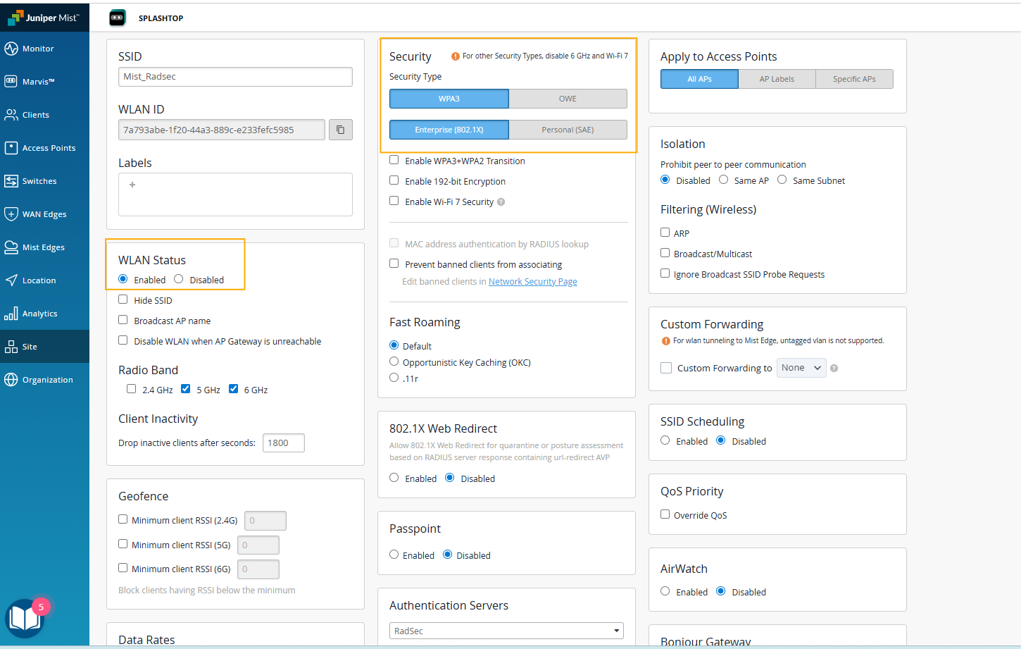 Mist WLAN (SSID) Configuration