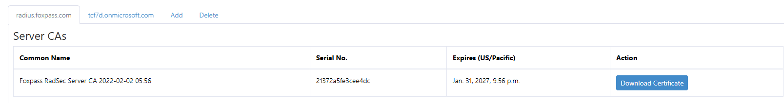 Under Server CAs, download the certificate. This will be used by Mist to trust Foxpass