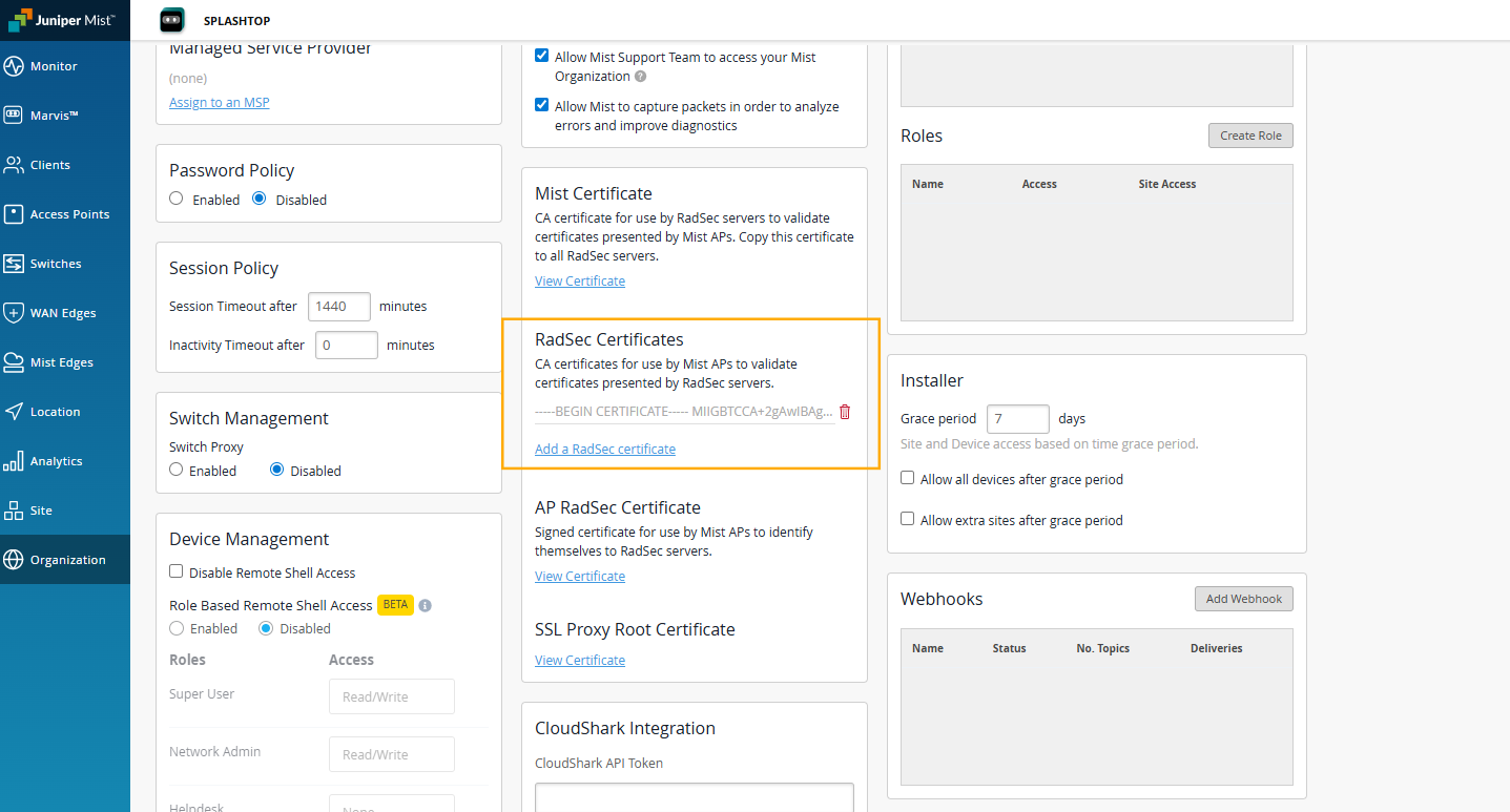 RadSec certificate configuration in Mist